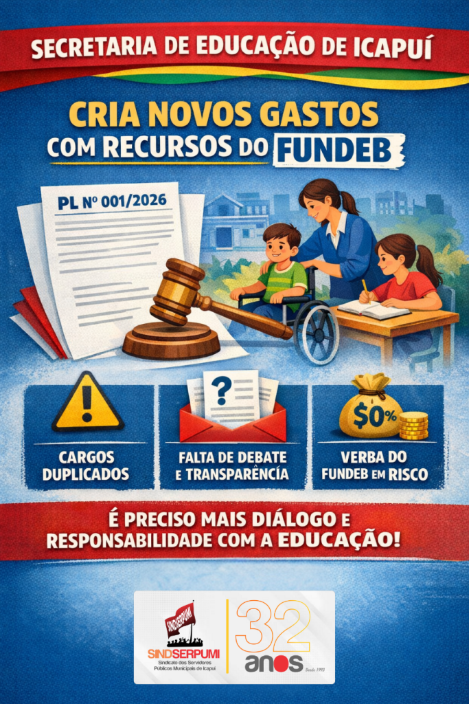 A Secretaria Municipal de Educação encaminhou ao Poder Legislativo o Projeto de Lei nº 001/2026, que cria um programa destinado a estabelecer direitos, deveres e atribuições no atendimento a alunos com deficiência na rede pública municipal. No mérito, não há objeções ao objetivo central da proposta. Ao contrário, há anos nossa entidade sindical, por meio de sua diretoria, defende que o município regulamente, por meio de legislação específica, uma demanda que cresce de forma contínua no sistema educacional.